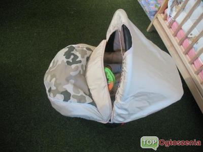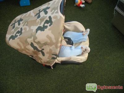 witam! Sprzedam fotelik samochodowy (nosidełko do 10kg) mało używany, jeszcze na gwarancji. jasnobeżowy z dodatkami pustynne moro. fotelik posiada budkę w kolorze beżowym oraz ochraniacz na nóżki beżowy i moro, gratis dodaję budkę i ochraniacz na nóżki całe w moro