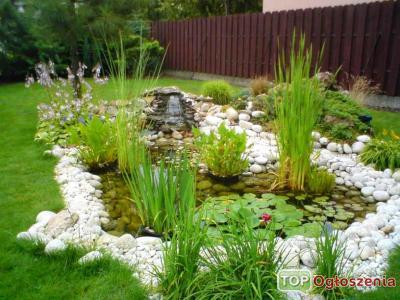 - wykonaniu elementów wodnych w ogrodzie (kaskady, strumyki, oczka wodne)