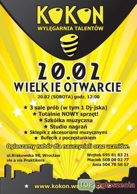 KOKON - wylęgarnia talentów to miejsce dla wszystkich, zarówno młodych jaki i starych, zespołów i artystów solowych, dla każdego kto poszukuje odpowiedniego lokum, w którym będzie mógł tworzyć i nagrywać swoją muzykę.